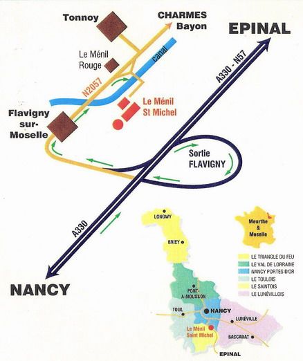 La ferme datant de 1841, se situe 3.5 km après Flavigny sur Moselle, sur la RD570 (entre Flavigny et Tonnoy), le long du Canal de l'Est.