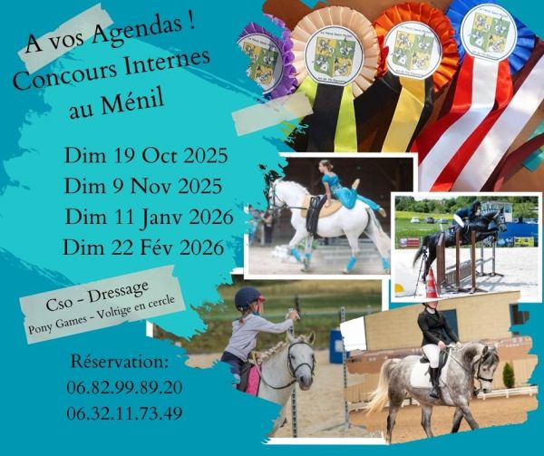 Cavaliers du club: avantage tarifaire sur une carte de 4 stages d'une journée (utilisable toute l'année jusqu'en juin 2026, règlement en plusieurs fois), plus d'infos au bureau.