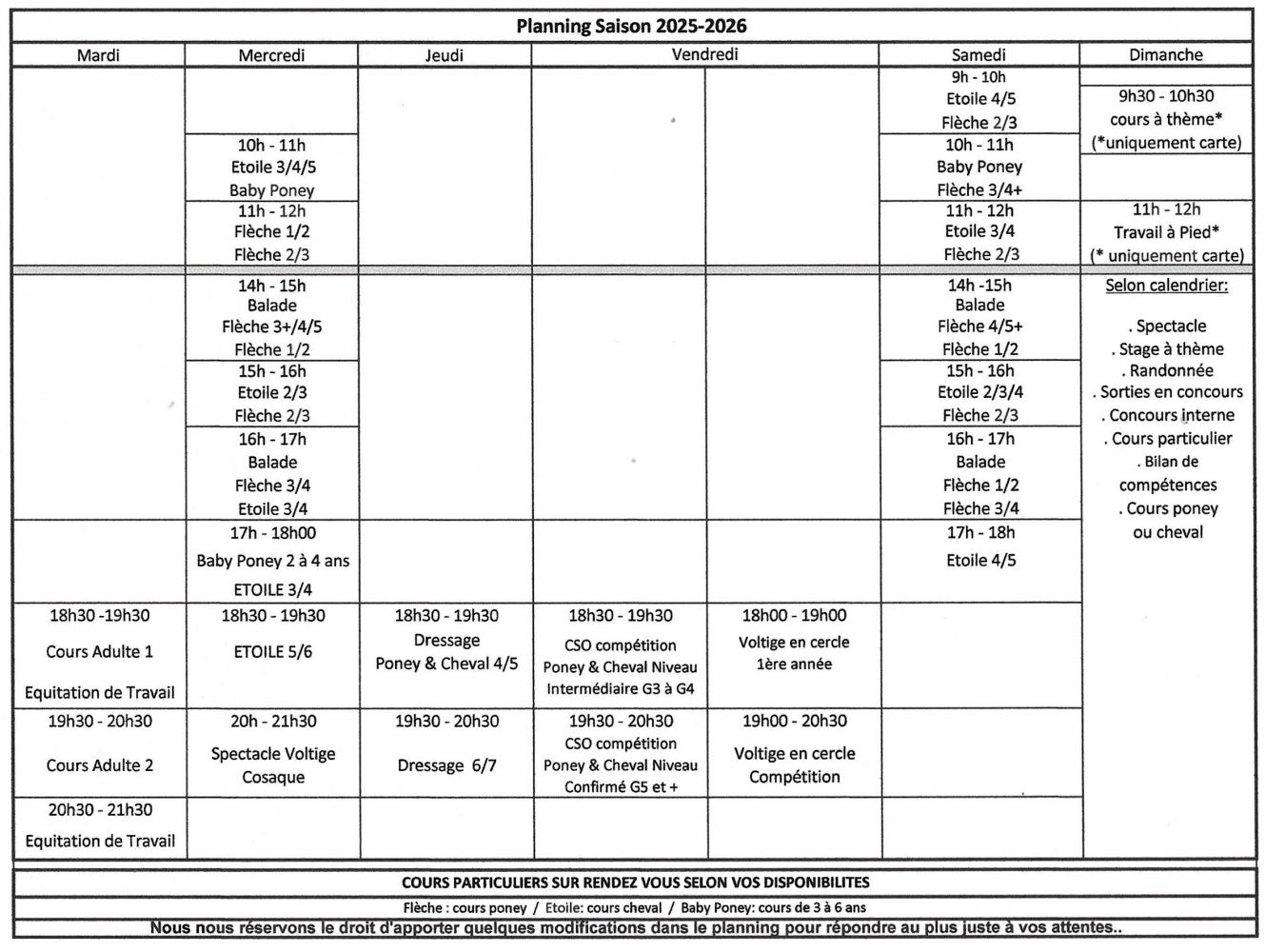 Cours Cheval: inscription le Mardi 9 Septembre 2025 à partir de 14h